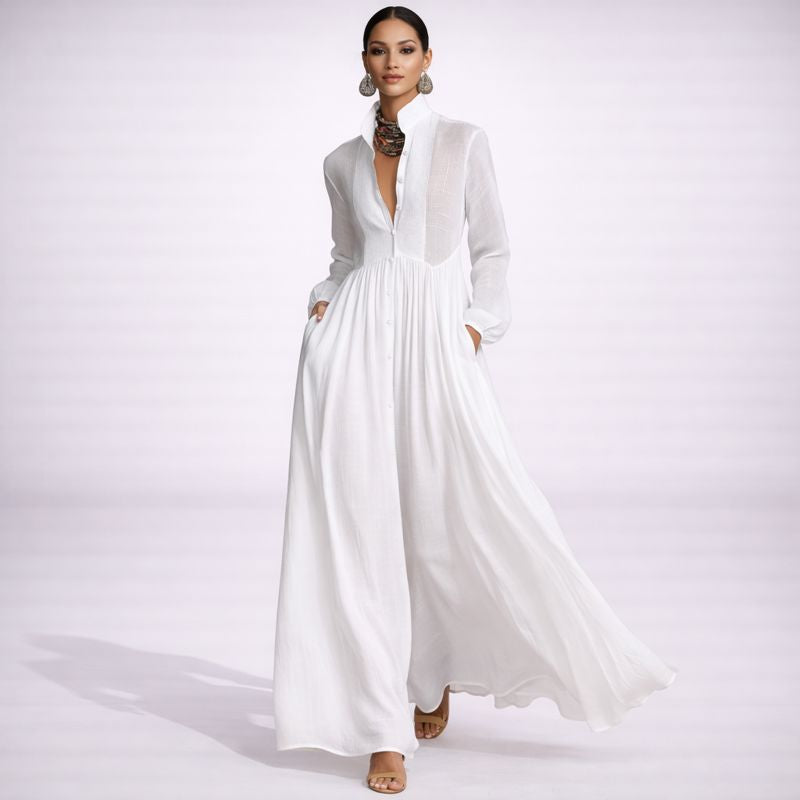 Effortless elegance meets natural comfort with the Elisa™ Maxi Dress. Crafted from a breathable cotton and linen blend, this minimalist design is defined by its refined patchwork detailing, structured high neckline and flowing maxi silhouette. Light, airy and timeless, Elisa™ is the perfect choice for women who appreciate understated style with a modern edge.